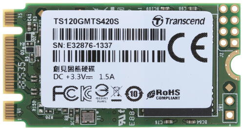 Базирующийся на популярном контроллере SSD M.2 накопитель Transcend MTS420 [TS120GMTS420S] имеет объем, равный 120 ГБ. Модель подойдет для исполнения роли единственного устройства хранения данных. Накопитель крайне компактен: он соответствует форм-фактору 2242. Используемые ключи разъема M.2 – B и M. Для обмена данными с устройством используется интерфейс SATA 3. Пропускная способность этого интерфейса равна 6 Гбит/с. SSD M.2 накопитель Transcend MTS420 [TS120GMTS420S] обеспечивает уровень производительности, который достаточен для эффективного решения любых типовых задач. Максимальная скорость последовательного чтения равна 560 МБ/с. Скорость последовательной записи может достигать 500 МБ/с. Скорости записи и чтения 4-килобайтных файлов равны 85000 и 65000 IOPS соответственно. Ресурс накопителя оценивается производителем в 40 TBW. О высочайшем уровне надежности модели свидетельствует показатель MTBF, составляющий 1000000 ч. Сохранить уровень быстродействия накопителя по истечении значительного времени помогает поддержка команды TRIM.