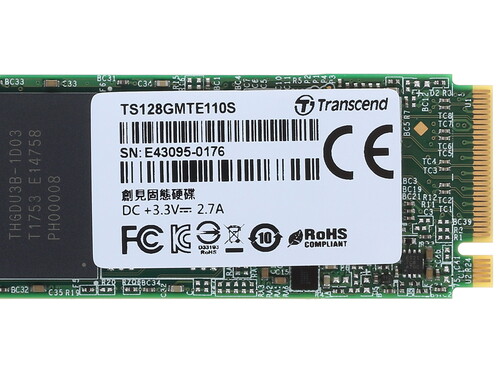 128-гигабайтный SSD M.2 накопитель Transcend MTE110S [TS128GMTE110S] – модель от всемирно известного производителя устройств памяти. Накопитель может использоваться совместно с мобильными и стационарными компьютерами, в которых реализована поддержка технологии NVMe. Форм-фактор устройства – один из самых распространенных (2280). Накопитель рассчитан на использование интерфейса PCI-E 3.0 x4. Тип ключа – M. SSD M.2 накопитель Transcend MTE110S [TS128GMTE110S] гарантирует скоростные показатели, которые способны удовлетворить подавляющее большинство пользователей. Скорость последовательного чтения может достигать 1600 МБ/с. Скорость последовательной записи вчетверо меньше – 400 МБ/с. Работу устройства обеспечивает популярный контроллер Silicon Motion SM2263T. Тип чипов памяти – TLC 3D NAND. Ресурс накопителя составляет 50 TBW. Показатель MTBF – 1 миллион часов. При производстве накопителя была применена односторонняя компоновка чипов памяти. Толщина устройства – 3.58 мм. Накопитель упакован в компактную коробку, имеющую традиционный для продукции Transcend внешний вид.