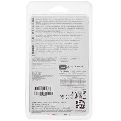 SATA накопитель Apacer AS340X является внутренним устройством, которое позволяет хранить ресурсоемкие программы, мультимедийные файлы, документы, игры. Данная модель с устройством SSD соответствует форм-фактору 2.5 дюйма и обладает емкостью 240 ГБ, предоставляя достаточно пространства. Благодаря скорости чтения на уровне показателя 550 Мбайт/сек накопитель демонстрирует быстродействие и отзывчивость системы. Прочная конструкция корпуса гарантирует устойчивость к механическим воздействиям и вибрации. Подключение Apacer AS340X выполняется посредством интерфейса SATA III.