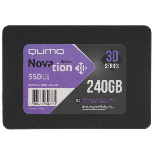 SATA накопитель QUMO Novation [Q3DT-240GSKF] обеспечивает ускоренную обработку команд в многозадачном режиме благодаря скорости 530 Мбайт/сек при чтении и 450 Мбайт/сек в режиме записи. Для размещения документов, программ, мультимедийного контента он предлагает 240 ГБ свободного пространства. Благодаря специальной форме ячеек памяти достигается стабильное взаимодействие между процессором и накопителем. Алгоритм автоматической сборки мусора Garbage Collection защищает от ошибок и сбоев в работе диска QUMO Novation [Q3DT-240GSKF]. Подключение к аппаратной платформе ПК выполняется через интерфейс SATA.