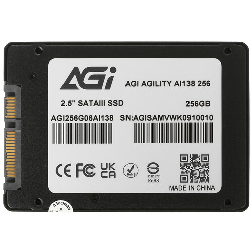 SATA накопитель AGI AI138 [AGI256G06AI138] соответствует форм-фактору 2.5 дюйма. Устройство совместимо с подавляющим большинством стационарных компьютеров и многими ноутбуками. Объем модели – 256 ГБ. Производительность накопителя типична для SSD SATA. Максимальная скорость последовательного чтения равна 530 МБ/с, а максимальная скорость последовательной записи – 510 МБ/с. Быстродействие накопителя достаточно для эффективной работы с редакторами документов, архиваторами, файловыми менеджерами и другим типовым программным обеспечением. Максимальный ресурс записи SATA накопителя AGI AI138 [AGI256G06AI138] – 150 ТБ. Это хороший показатель для SSD рассматриваемой емкости. Накопитель адаптирован к высокой интенсивности перезаписи информации.