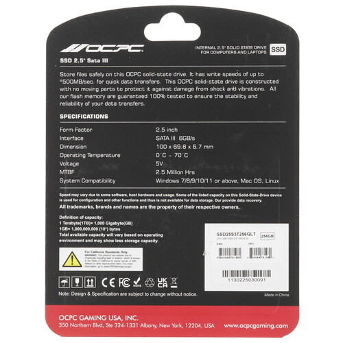 SATA накопитель OCPC XTL-200 [SSD25S3T256GLT] со структурой памяти 3D NAND обладает объемом 256 ГБ для хранения файлов и программ владельца. При этом он ускоряет работу лэптопа или ПК, к которому подключен. Скорость чтения для модели составляет 500 Мбайт/с, а записи – 420 Мбайт/с. MTBF (среднее время безотказной работы) достигает 2.5 млн часов. Для подключения OCPC XTL-200 [SSD25S3T256GLT] служит физический интерфейс SATA III.