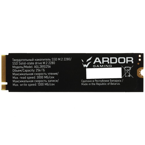 M.2 NVMe накопитель ARDOR GAMING Lore L281 [AGL281G256] с объемом 256 ГБ ориентирован на использование в качестве системного диска стационарного компьютера или единственного накопителя ноутбука, который преимущественно используется для решения рабочих задач. Модель использует для обмена данными высокоскоростной интерфейс PCIe 3.0 x4 и устанавливается с использованием ключа M. Форм-фактор накопителя – 2280. Устройство с размерами 80x22x2.2 мм совместимо почти с любыми материнскими платами настольных ПК и многими ноутбуками. Накопитель ARDOR GAMING Lore L281 [AGL281G256] не оснащен радиатором, но не перегревается при повышенных нагрузках благодаря энергоэффективности и низкому тепловыделению. Потребляемая мощность устройства – 1.8 Вт. Накопитель обеспечивает скорость последовательного чтения до 3000 МБ/с. Соответствующий показатель для записи – 1300 МБ/с. Параметры гарантируют ускоренную загрузку операционной системы и минимизируют время выполнения файловых операций в офисных пакетах, фоторедакторах, базах данных и другом типовом ПО. Максимальный ресурс записи модели – 150 ТБ.