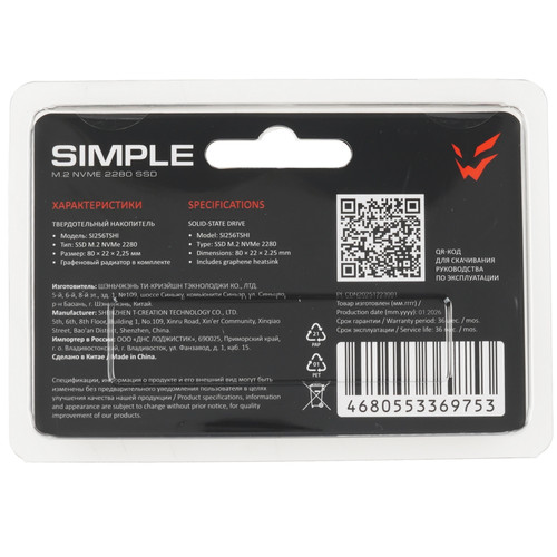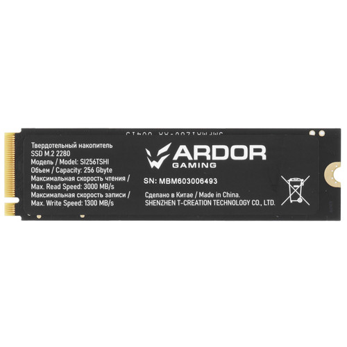 M.2 NVMe накопитель ARDOR GAMING Simple SI256TSHI имеет объем 256 ГБ. Скорость в режиме чтения 1300 Мбайт/сек и записи 3000 Мбайт/сек обеспечивает быстродействие компьютера при запуске требовательных программ и игр, редактировании контента. Структура памяти 3D NAND с тремя битами на ячейку увеличивает ресурс перезаписи для использования устройства в качестве облачного хранилища.
