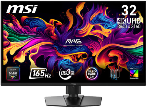 Монитор формата MSI MAG 322UP QD-OLED E16 с диагональю 31,5” с впечатляющим разрешением 3840x2160 пикселей и технологией QD-OLED, обеспечивающей глубокий черный цвет и яркость до 1000 нит. Обладает сверхбыстрым временем отклика 0,03 мс и частотой обновления 165 Гц, делая картинку максимально плавной и реалистичной. Интерфейсы включают два порта HDMI, DisplayPort и универсальный USB-C. Поддерживаются удобные настройки положения экрана: наклон (Tilt), поворот (Swivel), регулировка высоты (HAS) и разворот в портретный режим (Pivot).