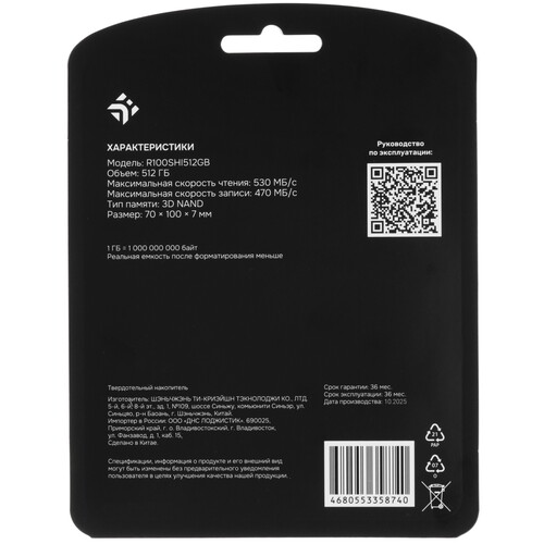 SATA 2.5" накопитель DEXP R100 [R100SHI512GB] объемом 512 ГБ поможет ускорить ваш ПК или ноутбук, обеспечит быструю загрузку Windows, позволит заниматься видеомонтажом, 3D-моделированием. Также он подойдет для резервного хранения сотен тысяч фото, видео, текстовых файлов, 3-5 игр с разрешением 1080р. При скорости чтения/записи 530/450 Мб/сек приложения и папки будут открываться без пауз, а файлы копироваться в 5-10 раз быстрее по сравнению со стандартным жестким диском HDD. SATA 2.5" накопитель DEXP R100 [R100SHI512GB] подключается с помощью универсального интерфейса SATA. Его поддерживают ПК и ноутбуки разных брендов, старого образца и последних версий. Рабочий ресурс диска – 125 ТБ. При умеренной нагрузке и записи данных по 5-10 ГБ в день накопителя хватит на 10 лет.