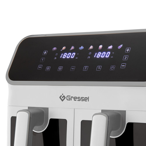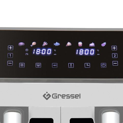Аэрогриль Gressel GAF-1827 — это устройство, которое сделает процесс приготовления продуктов в настоящее удовольствие. При помощи продуманной конструкции и мощному двигателю в 2700 Вт, Вы сможете создавать кулинарные шедевры так как двойная чаша позволяет готовить два разных блюда одновременно! Таймер и предустановленные программы делают процесс готовки максимально удобным. Вы можете полностью контролировать время приготовления и быть уверенными в идеальном результате. Готовьте всё - от морепродуктов до картофеля фри. Простота ухода — металлические решётки с антипригарным покрытием легко моются.