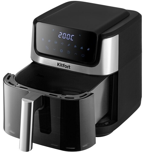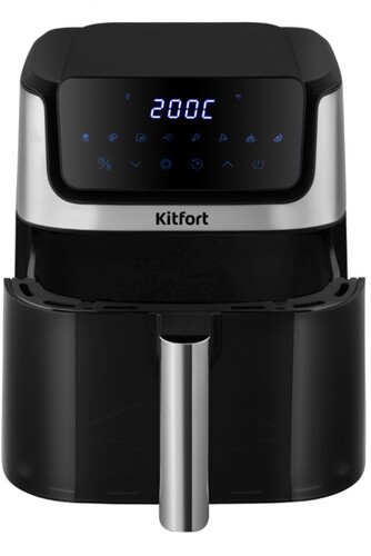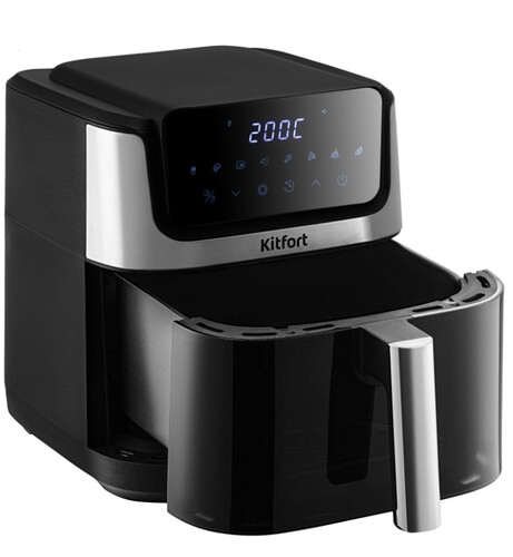 Аэрогриль Kitfort КТ-2284 мощностью 1800 Вт и чашей 6.5 литров имеет 8 программ: выпечка, овощи, пицца, рыба, куринные крылышки, курица, картофель фри, мясо. Управление прибором осуществляется с помощью сенсора и дисплея.