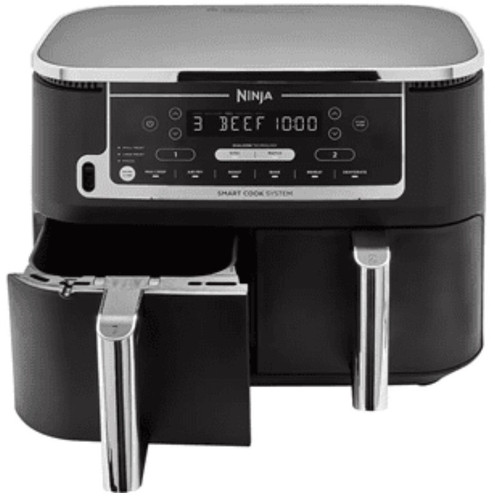 Аэрогриль Ninja AF451EU позволяет готовить разнообразные блюда благодаря двум корзинам общим объемом 9,5 литра, что подходит для семейных обедов или встреч с друзьями. Температурный диапазон от 40°C до 230°C обеспечивает приготовление как деликатных овощей, так и хрустящей курицы.