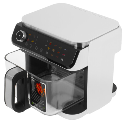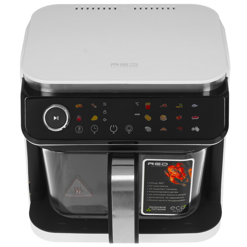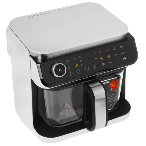 Белый аэрогриль RED Colorcook G550W позволит вам печь изделия из теста, готовить картофель фри, котлеты, креветки, курицу гриль, расстаивать тесто, сушить овощи и фрукты. Всего предусмотрено 18 автоматических программ с регулировкой времени приготовления. Съемная чаша объемом 5.5 л изготовлена из стекла, поэтому вы сможете мыть ее в посудомоечной машине. В комплекте есть решетка для гриля и силиконовой коврик по размеру чаши для выпекания мучных изделий. По завершении работы срабатывает звуковой таймер. RED Colorcook G550W имеет встроенную защиту от перегрева и поражения электрическим током. Блокировка от детей не позволит случайно сменить программу или выключить аэрогриль. Управление устройством происходит с помощью сенсора на корпусе. Функция поддержания тепла позволит сохранит блюдо горячим в течение длительного времени.