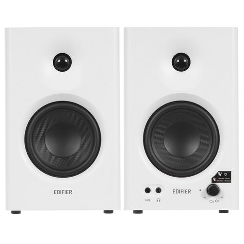 Активный монитор 2.0 Edifier MR4 – это две стильные фронтальные колонки с мощностью по 21 Вт. Устройства представлены в белых МДФ-корпусах, которые эффектно смотрятся на фоне любого интерьера. Имеются разъемы TRS, RSA и Jack 3.5 mm для наушников, а также внешний регулятор громкости. Колонки Edifier MR4 представлены в виде двухполосной системы с усилителем класса D, фазоинвертором, динамиками ВЧ с диаметром 2.5 см и НЧ 10.1 см. Система воспроизводит звуки в частотном диапазоне от 60 Гц до 20 кГц при уровне общих искажений всего 0.2%. Размеры каждой фронтальной колонки составляют 14x22.8x19.75 см.