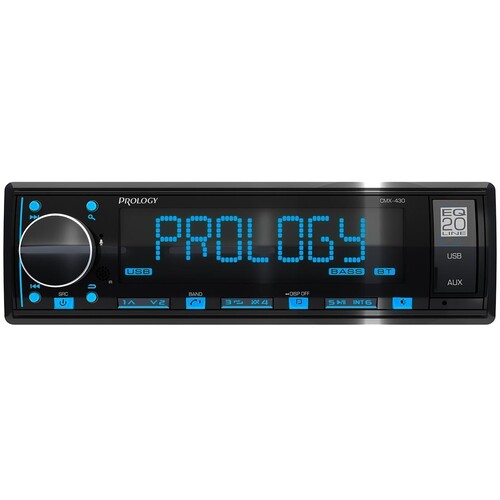 Автопроигрыватель Prology CMX-430 поддерживаtn все популярные аудиоформаты, включая MP3, WAV и FLAC, оснащается 20-полосным эквалайзером, обеспечивающим более тонкую настройку звука. Цифровой PLL-тюнер FM-диапазона дает возможность сохранить в памяти до 18 станций. Шесть выходов RCA позволяют построить в автомобиле полноценную аудиосистему с внешними усилителями и сабвуфером. Автомагнитола имеет стандартный типоразмер 1DIN, минимальную установочную глубину 100 мм и оснащена разъемом ISO. Поддерживает функцию многоцветной двухзонной подсветки (MULTICOLOR) для клавиш управления и индикаторного дисплея. Пользователь может выбрать один из девяти цветов для каждой зоны (дисплей / кнопки управления) или настроить собственный при помощи приложения на смартфоне. Ресивером можно управлять при помощи мобильного приложения Prology Audio, установленного на смартфон с операционной системой Android или iOS.