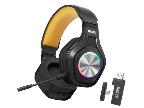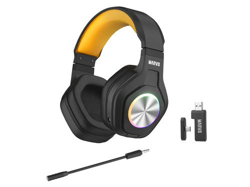 MARVO Pulz 80W - беспроводная игровая гарнитура, обеспечивающая свободу движений благодаря технологиям Bluetooth 5.3 и 2.4 GHz. Быстрое сопряжение, стабильный сигнал и ультранизкая задержка звука позволяют наслаждаться игрой без задержек и перебоев. В комплект входит универсальный 2-в-1 USB-A/Type-C адаптер, обеспечивающий широкую совместимость с ПК, консолями и мобильными устройствами. Батарея емкостью до 50 часов позволяет играть долгое время без перерыва. Стильная RGB-подсветка с яркими статическими эффектами добавляет выразительности вашему игровому пространству. Встроенный всенаправленный микрофон, выполненный в виде съемного элемента, точно захватывает голос из любого положения для чистой и четкой коммуникации. Гарнитура полностью совместима с PS4, PS5, Xbox One, ПК, Android, macOS и iOS. Закрытый дизайн на основе накладных амбушюр обеспечивает отличную звукоизоляцию и глубокий басс, а регулируемое оголовье гарантирует надежную и комфортную посадку даже при продолжительных игровых сессиях.
