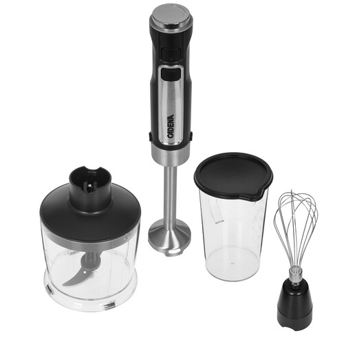 Блендер погружной CADENA BC505M блендер в комплекте с 3 насадками, и держателем для насадок, сочетает в себе мощность и многофункциональность! Мощность 1500 Вт, позволяет справится с любыми задачами. Плавная регулировка оборотов от 11000 до 15000 в мин. Кнопка Турбо, led подсветка кнопок управления. Специальная конструкция кнопок защищает от случайного включения. Блендер оборудован защитой от блокировки и перегрева. Уникальная конструкция формы ножей блендера позволяет выполнить задачи максимально эффективно. Основные компоненты выполнены из нержавеющей стали. Шнур питания длинной 1,2 м. Все это делает его отличным помощником на кухне!