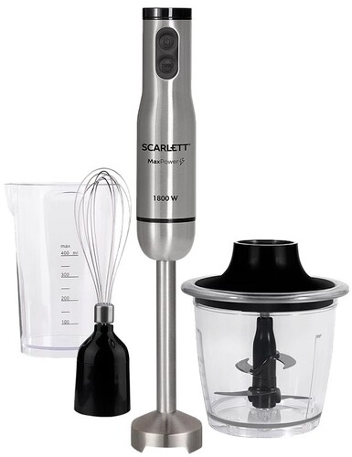 Блендер SC-HB42F87 — мощь, удобство и универсальность в одной модели! Мощный, функциональный и стильный SC-HB42F87 блендер серии Max Power справится с ежедневными задачами — от измельчения до взбивания. Мощность 1800 Вт — справится с самыми сложными продуктами. Насадка-блендер Steel Pro полностью изготовленная из нержавеющей стали — прочная, долговечная и безопасная. Плавная регулировка скорости + режим Turbo — полный контроль и мгновенное усиление мощности одним нажатием. В комплекте: измельчитель 0.4 л — идеально для соусов, зелени и не только; мерный стакан 0.4 л — удобно отмерять и готовить без лишней посуды; венчик для взбивания — воздушные сливки, пышные омлеты и легкие кремы — за пару минут!