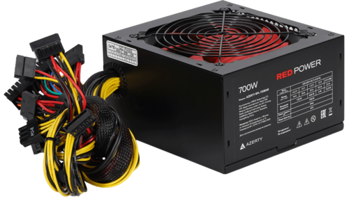 Блок питания Azerty RPL-700 представляет собой высокотехнологичное устройство с общей максимальной мощностью 700 Ватт, созданное для обеспечения бесперебойной работы компьютеров, требующих солидного источника питания. Это – оптимальное решение для высокопроизводительных офисных рабочих станций и игровых ПК, оснащенных видеокартами среднего уровня. Благодаря установленным радиаторам с ребрами охлаждения достаточно большой площади и встроенному вентилятору охлаждения с регулируемой скоростью вращения обеспечивается эффективное охлаждение компонентов и низкий уровень шума. Съемная решетка вентилятора практически не препятствует воздушному потоку, а обслуживание можно проводить без необходимости разбирать корпус. Чтобы уменьшить переходное сопротивление, используется несъемная проводка с оптимальными значениями длины и количества разъемов. Все проводники имеют сечение не менее 18 AVG, а связка проводов питания материнской платы защищена от случайных повреждений специальной оплеткой. Переходное пластиковое кольцо на корпусе исключает перетирание изоляции проводов на выходе. В блок установлена пара высокотемпературных главных конденсатора с номиналом 105 градусов. Встроенный фильтр электромагнитных помех защищает от негативного воздействия извне и уменьшает влияние самого источника на другое оборудование в сети. Сдвоенный диодный мост делает преобразование переменного тока в постоянный более стабильным и надежным, улучшая качество выходного напряжения, минимизируя пульсации и шумы, что важно для чувствительных электронных компонентов.