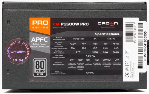 Модель CROWN CM-PS500W PRO обладает всеми необходимыми характеристиками для надежной работы офисного компьютера.