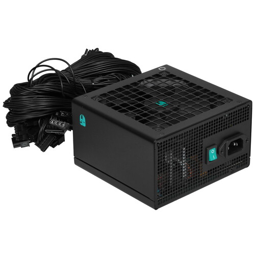 Блок питания DEEPCOOL GamerStorm PN850D представляет собой решение, соответствующее стандарту ATX v3.1. Он обладает мощностью 850 Вт и сертификацией 80 Plus Gold, что гарантирует высокую эффективность работы. Основной особенностью этого блока питания является его способность кратковременно выдавать до 200% максимальной мощности, что делает его совместимым с текущими и будущими поколениями графических процессоров. Устройство оснащено не модульной системой кабелей. Вентилятор размером 120 мм с подшипником скольжения обеспечивает эффективное охлаждение, хотя его качество оценивается как среднее.