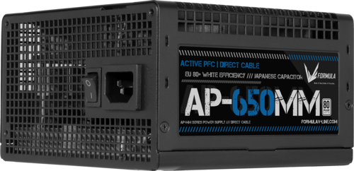 Блок питания Formula AP-650ММ представляет собой надежное решение для компьютерных систем. Этот блок питания имеет сертификацию 80 PLUS WHITE, что гарантирует его энергоэффективность. Он оснащен стандартным 20+4-пиновым разъемом для подключения к материнской плате и активным корректором коэффициента мощности (APFC) для стабильной работы. Охлаждение обеспечивается 120-миллиметровым вентилятором, что способствует эффективному теплоотводу. Блок питания предлагает шесть разъемов SATA для подключения накопителей и других устройств.