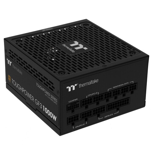 Thermaltake Toughpower GF3 полностью совместим со спецификациями Intel ATX 3.0, что позволяет выдерживать скачок мощности до 200% и достигать эффективности до 70% при низкой нагрузке. Блоки питания GF3 кратковременно могут выдерживать 3-х кратное превышения мощности по линии питания GPU и 2-кратное по всем остальным линиям. Серия GF3 разработана для графических адаптеров NVIDIA и AMD, с любым интерфейсом дополнительного питания. Toughpower GF3 1000W Gold оснащен 16-контактным разъемом 12VHPWR, обеспечивающий мощное и стабильное питание вашей видеокарте 4000/5000 поколения. Блок питания имеет полностью модульную структуру подключения кабелей. Это позволяет подключить только те кабели, которые вам нужны, минимизируя при этом их количество, что положительно сказывается на качестве продуваемости внутри корпуса. Все кабели имеют плоскую форму, что упрощает их укладку внутри корпуса.