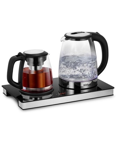 Чайный набор КТ-6737 представляет собой идеальное сочетание функциональности и удобства. Вскипятите воду, заварите чай или кофе в заварочном чайнике, а встроенная платформа с подогревом поможет сохранить готовый напиток теплым. Заварочный чайник изготовлен из термостойкого стекла и имеет съёмный фильтр из нержавеющей стали для чая или кофе. В месте установки заварочного чайника на базу находится платформа с подогревом, благодаря которой можно сохранять готовый напиток тёплым. Внешняя часть корпуса выполнена из пластика и нержавеющей стали, а внутренняя − из стекла. Крышка чайника пластиковая со вставками из нержавеющей стали. Пластиковая ручка чайника не скользит и не нагревается благодаря особенностям конструкции. Чайный набор КТ-6737 оснащён двумя режимами работы − «Чай» или «Кофе». В режиме «Чай» можно установить температуру платформы с подогревом от 75 до 85°С (по умолчанию выбрано 80 °С), в режиме «Кофе» – от 60 до 80 °С. Шаг установки составляет 1°С. Ёмкость чайника составляет 2 л, а заварочного чайника 1,2 л. Центральный контакт для чайника на базе даёт возможность ставить чайник на неё в любом положении, обеспечивая вращение на 360°. Чайник имеет защиту от перегрева и включения без воды