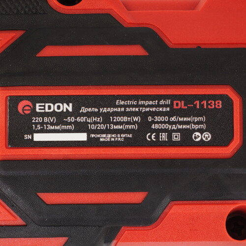 Дрель ударная электрическая EDON DL-1138 предназначена для сверления с ударом отверстий в бетоне, кирпичной кладке и камне, сверления отверстий в различных конструкционных материалах.