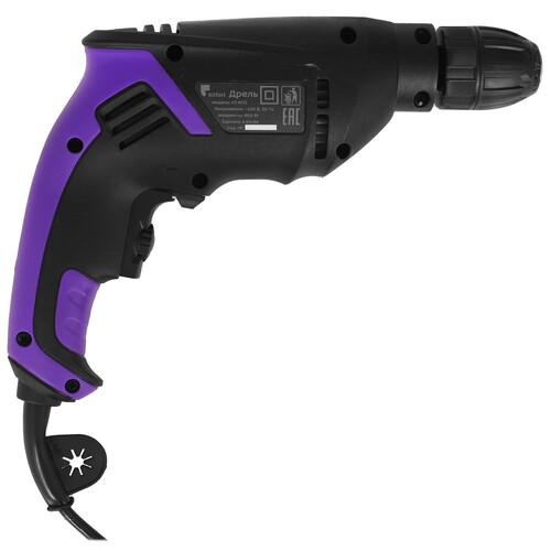 Дрель КТ-6531 поможет вам провести ремонтные работы или собрать мебель. С ней вы легко и быстро сможете просверлить отверстия на разных поверхностях. Благодаря эргономичной ручке дрель удобно лежит в руке.Дрель КТ-6531 – устройство, оснащенное регулятором скорости вращения. Чем скорость больше, тем более твердые материалы можно сверлить. С помощью регулятора вы можете изменить скорость вращения.Чтобы установить сверло, раскрутите патрон так, чтобы фиксаторы в нём разошлись в стороны. Установите сверло и закрутите патрон так, чтобы фиксаторы плотно зажали сверло. Правильное положение сверла — ровно по центру патрона.Зажмите кнопку включения, нажмите на блокиратор, затем отпустите кнопку включения, чтобы перевести дрель в режим непрерывной работы без постоянного нажатия на кнопку включения. Чтобы вывести дрель из режима непрерывной работы, нажмите на кнопку включения.