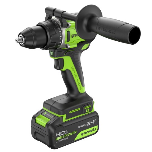 Дрель-шуруповерт Greenworks GD24DD90 (3707507CUD) — инструмент с двумя рабочими режимами для работ в мастерской или на стройплощадке: сверление без удара и заворачивание/отворачивание метизов. Greenworks Intelligent Power – инновационная система контроля и управления батареей, инструментом и зарядным устройством обеспечивающая максимальную производительность и долгий срок службы. Инструмент оснащен бесщеточным двигателем DigiPro с цифровым управлением, обеспечивающим долгий срок службы. Максимальный мягкий крутящий момент составляет 45 Нм, жесткий – 90 Нм. Благодаря продуманной конструкции вес инструмента составляет всего 1.5 кг, что снижает усталость при работе. Планетарный редуктор имеет 2 скорости: 0-550 об/мин и 0-2100 об/мин. Переставляемая боковая рукоятка надежно фиксируется на металлическом корпусе редуктора для точного контроля. Моментная муфта с широким диапазоном (21+1 ступень) позволяет работать с любыми метизами на стройплощадке. Яркая LED-подсветка обеспечивает отличную видимость рабочей зоны в условиях слабого освещения. Эргономичный корпус из прочного полимера с нескользящим покрытием гарантирует комфортный и надежный хват. Функция мгновенного тормоза двигателя повышает безопасность, останавливая вращение сразу после отпускания курка.
