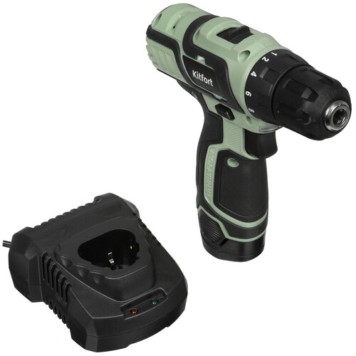 Аккумуляторная дрель-шуруповерт Kitfort КТ-6494 поможет вам провести ремонтные работы или собрать мебель. С ней вы легко и быстро сможете закрутить или выкрутить шурупы или винты, а также просверлить отверстия в разных поверхностях. Kitfort КТ-6494 имеет 2 режима работы. Один из них – режим закручивания. Чтобы выбрать вращение по часовой стрелке, сдвиньте переключатель «Вперед/Реверс» влево. Чтобы включить против часовой стрелки, сдвиньте его вправо. Среднее положение для блокировки. Также устройство предусматривает режим сверления. Режим предназначен для создания отверстий в различных материалах с помощью вращающегося инструмента.