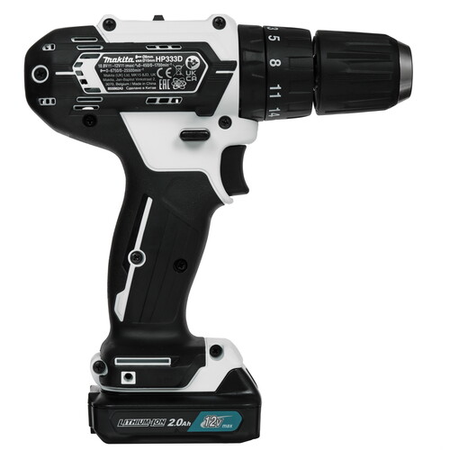 Дрель-шуруповерт Makita HP333DSAW используется для сверления отверстий, ввёртывания и откручивания резьбовых крепёжных изделий. Инструмент не требует подключения к электросети, что удобно для работы в любом месте. Инструмент пригоден для применения с винтами до М6 и для закручивания шурупов 6,3 см. Настройка крутящего момента производится кольцом за патроном, которое одновременно является переключателем режимов. Сверлить можно с ударом или без удара, выбор максимальной скорости (450 или 1700 об/мин.) осуществляется движком на верхней панели корпуса.