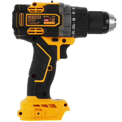 Бесщеточная дрель-шуруповерт STEHER системы LMS с максимальным крутящим моментом 165 Нм предназначена для работы с самым крупным крепежом (саморезы до 12 мм диаметром) и сверления отверстий до 40 мм в дереве. Встроенная защита от обратного удара предотвращает повреждение кисти при резкой блокировке вала Для сверления отверстий в различных материалах (при установке соответствующих сверл), закручивания/откручивания резьбовых соединений (при установке соответствующих бит),перемешивания ЛКМ (при установке соответствующих насадок)