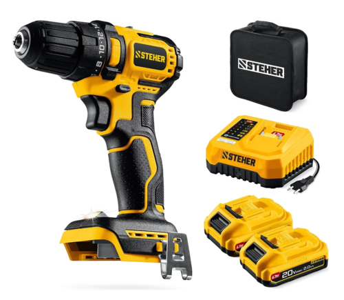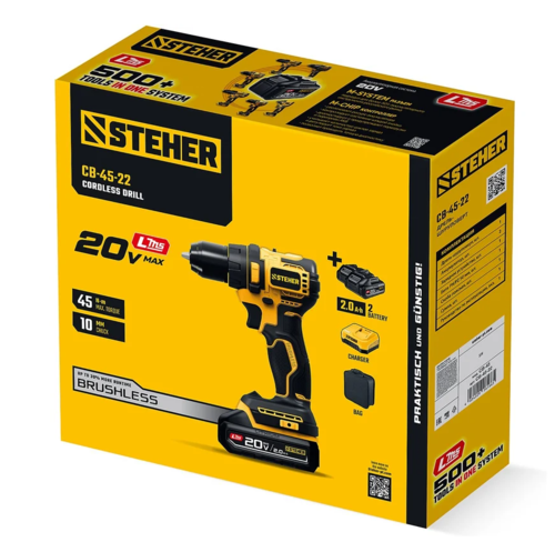 Бесщеточная дрель-шуруповерт STEHER обеспечивает как точное заворачивание маленьких саморезов, так и уверенное закручивание крупного крепежа до 8мм. Компактный размер и дизайн делают ее удобной для работы. Комплектация с двумя аккумуляторами позволяет работать практически без остановки Для сверления отверстий в различных материалах (при установке соответствующих сверл), закручивания/откручивания резьбовых соединений (при установке соответствующих бит),перемешивания ЛКМ (при установке соответствующих насадок)