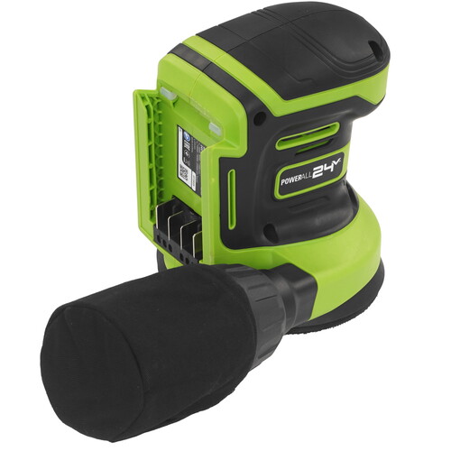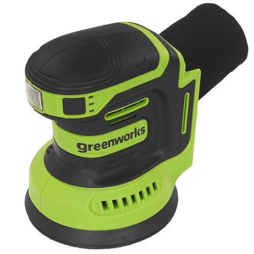 Эксцентриковая шлифмашина Greenworks OS325 (3100907) без АКБ и ЗУ – компактная и производительная эксцентриковая шлифмашина для шлифовки древесины, металла, красок и многих других материалов. Greenworks Intelligent Power – инновационная система контроля и управления батареей, инструментом и зарядным устройством обеспечивающая максимальную производительность и долгий срок службы. Шлифмашина легко управляется: кнопка включения и регулировки скорости находятся спереди. Мощный двигатель с электронной системой поддержкой оборотов сохраняет производительность даже под нагрузкой. Одна кнопка позволяет выбирать три режима – комбинации частоты вращения и колебаний – с индикацией для деликатной или интенсивной обработки. Корпус с эргономичным профилем и нескользящим покрытием обеспечивает комфортное удержание. Оснащена тарелкой средней твёрдости на липучке (Velcro), имеющей восемь отверстий для эффективного пылеудаления. Для сбора пыли предусмотрен съёмный текстильный мешок, также возможен вывод стружки через встроенный патрубок.
