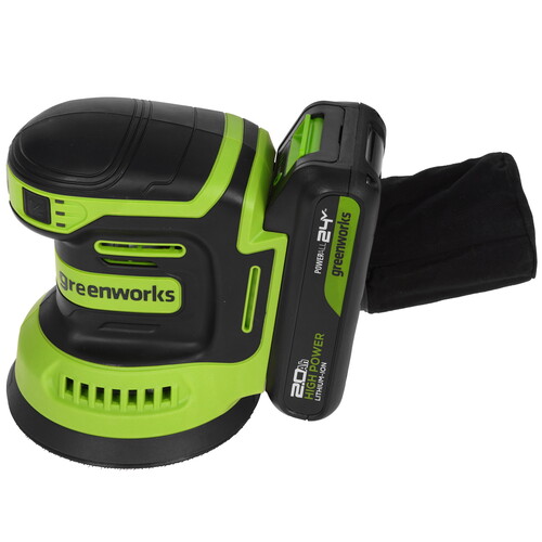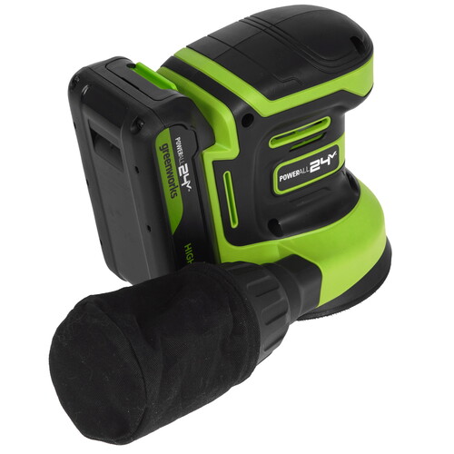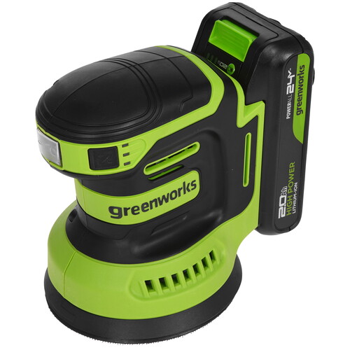 Эксцентриковая шлифмашина Greenworks OS325 (3100907CUA) – компактная и производительная эксцентриковая шлифмашина для шлифовки древесины, металла, красок и многих других материалов. Greenworks Intelligent Power – инновационная система контроля и управления батареей, инструментом и зарядным устройством обеспечивающая максимальную производительность и долгий срок службы. Шлифмашина легко управляется: кнопка включения и регулировки скорости находятся спереди. Мощный двигатель с электронной системой поддержкой оборотов сохраняет производительность даже под нагрузкой. Одна кнопка позволяет выбирать три режима – комбинации частоты вращения и колебаний – с индикацией для деликатной или интенсивной обработки. Корпус с эргономичным профилем и нескользящим покрытием обеспечивает комфортное удержание. Оснащена тарелкой средней твёрдости на липучке (Velcro), имеющей восемь отверстий для эффективного пылеудаления. Для сбора пыли предусмотрен съёмный текстильный мешок, также возможен вывод стружки через встроенный патрубок.