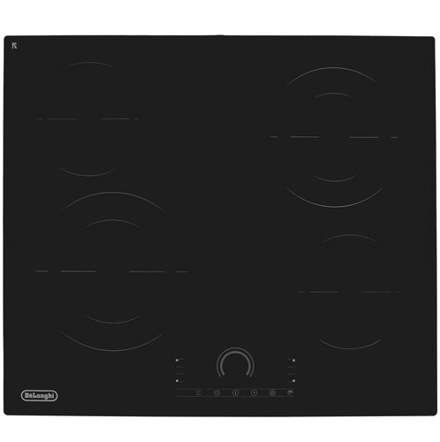 Варочная панель Delonghi изготовлена из стеклокерамики и имеет 4 конфорки, две из которых двухконтурные. Общая мощность 6600 Вт
