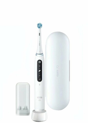 Электрическая зубная щётка Oral-B iO 5 White Alabaster — это инновационное устройство, разработанное совместно со стоматологами, которое обеспечивает профессиональную чистку зубов благодаря технологии возвратно-вращательных движений и микровибраций круглой насадки. Она эффективно удаляет налёт и заботится о здоровье дёсен. Щётка оснащена умным датчиком давления, который сигнализирует о чрезмерном надавливании красным световым сигналом, а об оптимальной чистке — зелёным. Интерактивный дисплей позволяет выбирать между 5 режимами чистки, отображает информацию об износе насадки и включает 2-минутный таймер, обеспечивая персонализированный подход к уходу за полостью рта. С Oral-B iO 5 вы сможете провести уникальную и эффективную процедуру чистки зубов, заботясь о здоровье зубов и дёсен.