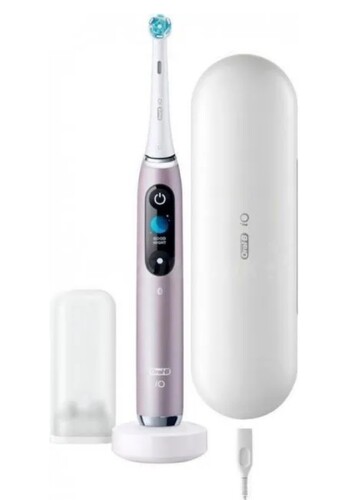 Ротационная электрическая зубная щетка ORAL-B iO Series 9N/iOM9 Rose Quartz белого/розового цвета предназначена для ежедневного использования. Она имеет 7 режимов работы с возвратно-вращательными движениями круглой головки насадки. Модель работает от аккумулятора и может переноситься в специальном дорожном футляре для дальнейшего использования в любом месте. Устройством можно управлять с помощью приложения Oral-B в смартфоне.
