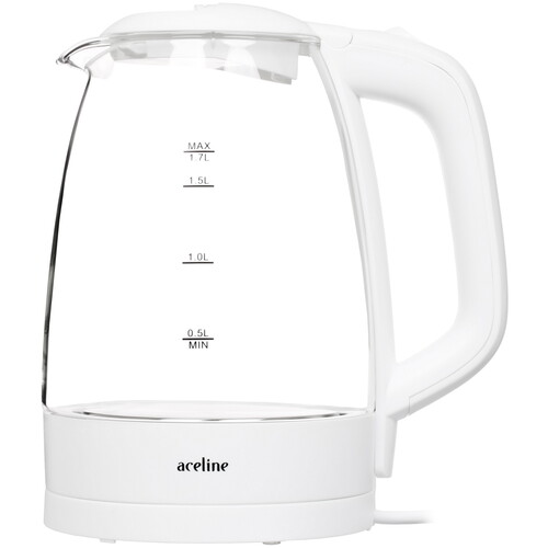 Электрочайник Aceline G-3000 выполнен из пластика и термостойкого стекла. Мощность 2200 Вт позволит вскипятить 1.7 литра воды в считанные минуты. Для обеспечения безопасности при повседневном использовании предусмотрены функция автовыключения, а также защита от включения при отсутствии воды. Для более точного определения объема на корпус электрочайника нанесена шкала уровня воды.