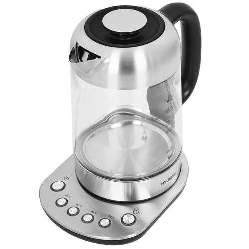 Электрический чайник Hyundai HYK-G8407 имеет мощность в 2200 Вт для быстрого закипания воды. Объема в 1.8 литра достаточно для приготовления нескольких чашек горячего напитка. Данная модель оборудована качественной контрольной группой Strix, что обеспечивает долгий срок службы. Скрытый нагревательный элемент способствует быстрому нагреву воды и упрощает уход за чайником. Прозрачный корпус и подсветка воды служит не только украшением, но и открывает возможность контролировать работу устройства. 4 настраиваемых температурных режима помогают точно подобрать оптимальную температуру для разных сортов чая, кофе, настоек, детского питания и других напитков. Устройство способно поддерживать заданную температуру на протяжении длительного времени. Фильтр от накипи гарантирует чистоту воды. Чайник безопасен в использовании, поскольку не включается без воды и автоматически отключается при закипании, подавая звуковой сигнал.