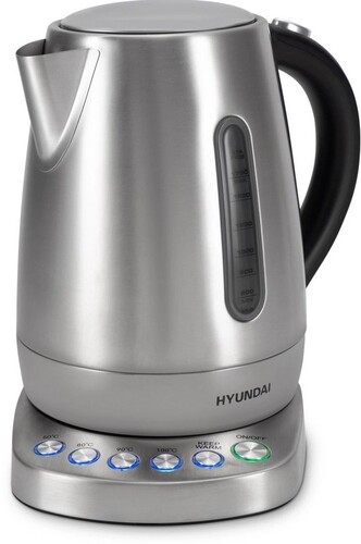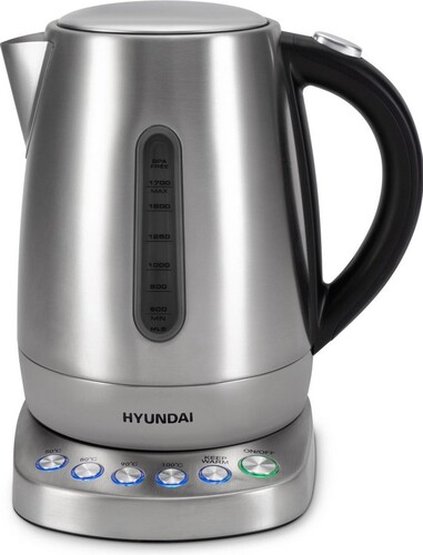 Электрический чайник Hyundai HYK-S7770 — прибор, созданный для тех, кто ценит функциональность, точность и стиль. Мощность в 2200 Вт обеспечивает быстрый нагрев воды, а вместительный объем в 1.7 литра позволяет приготовить достаточно напитков для семьи или небольшой компании. Корпус из нержавеющей стали придает чайнику стильный вид, который гармонично впишется в любой кухонный интерьер. Прибор оснащен интуитивно понятной панелью управления и 4 предустановленными температурными режимами (50, 80, 90 и 100 градусов Цельсия), а также функцией поддержания заданной температуры до 2 часов. Скрытый нагревательный элемент способствует быстрому нагреву и облегчает уход за чайником. Индикатор уровня воды помогает точно контролировать количество наливаемой жидкости, а специальный фильтр защищает от накипи. Звуковой сигнал оповестит Вас о закипании. Автоматическое отключение и защита от включения без воды повышают безопасность использования. Удобная подставка с вращением на 360 градусов и кнопка открытия крышки создают дополнительный комфорт при эксплуатации.