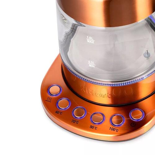 Электрический чайник с терморегулятором КТ-6658 может не только вскипятить воду, но и нагреть её до температуры 40, 70 и 90°С, что очень удобно для подогрева детского питания. Чайник также оснащён функцией поддержания температуры.