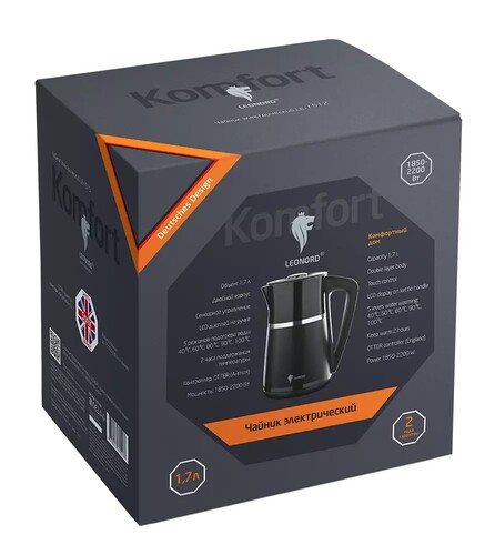 Практичный и легкий в использование чайник от Leonord. На ручке чайника располагается LCD дисплей, на котором Вы сами выставляете нужный для Вас градус, эта функция очень удобна и не заменима, когда вам нужно заварить чай с определенной температурой воды или, к примеру развести детское питание. При достижении заданной температуры чайник выключается и обладает функцией поддержания тепла в течение 2 часов. У чайника корпус с двойными стенками, которые обеспечивают изоляцию, благодаря которой дольше сохраняется температура воды, снижается уровень шума и чайник прохладнее на ощупь. Представлен в бежевом, красном и черном цвете.