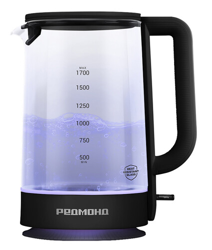 РЕДМОНД KG272 — практичный и стильный электрический чайник. Колба изготовлена из прочного и экологичного термостойкого стекла. При нагреве оно не выделяет запахов и не влияет на вкус воды.