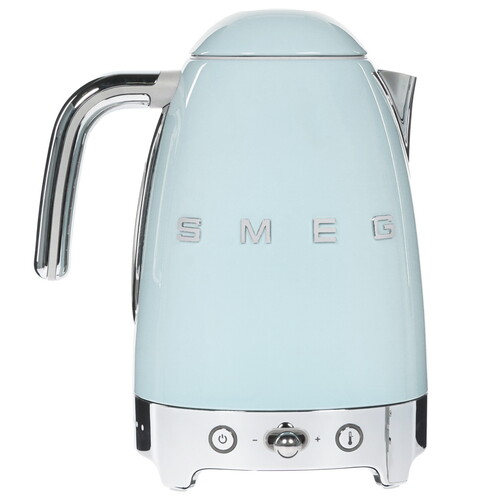Электрочайник Smeg KLF04PBEU с пастельной голубой расцветкой корпуса привлекает внимание ретро-дизайном 50-х годов. Габариты представленной модели - 22.6x27.5x17.1 см (ширина, высота и глубина соответственно). Вес равен 1.8 кг. В устройстве реализована защитная система, отключающая нагрев при отсутствии воды, что способствует безопасному использованию техники. Съемный фильтр из нержавеющей стали, располагающийся в носике, можно будет легко отмыть от загрязнений. Нескользящие ножки подставки гарантируют хорошую устойчивость прибора на любой горизонтальной поверхности. Электрочайник Smeg KLF04PBEU предусматривает семь режимов работы, благодаря которым вы сможете настроить температуру нагрева воды до 50°, 60°, 70°, 80°, 90°, 95° или 100°. При помощи шкалы уровня воды вы всегда сможете определить, какое количество воды осталось в чайнике. Комфортному использованию и хранению электроприбора способствует свободное вращение устройства на подставке и наличие в ней специального отсека для сетевого шнура.