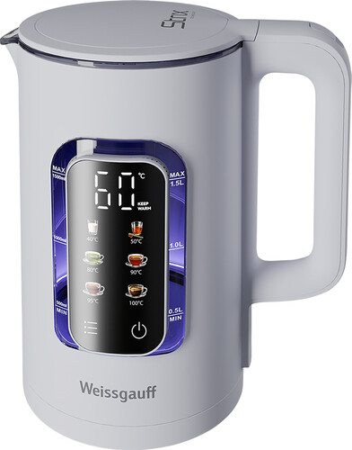 Вместительный и функциональный электрический чайник от Weissgauff, выполненный в белом цвете, обладает объемом 1,5 литра, возможностью нагрева до требуемой температуры в диапазоне от 40 до 100 °C, а также 6 уровнями регулировки нагрева и автоподогрева воды!