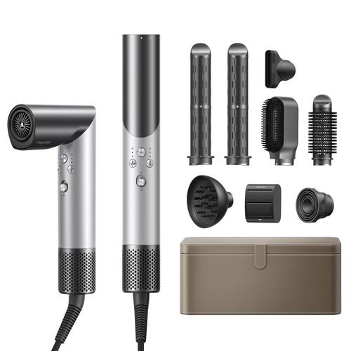 Фен-щетка TROUVER Master 10 с мощностью 1600 Вт обеспечивает достаточный воздушный поток для ухода за тяжелыми и влажными волосами. 8 насадок подходят для создания разных укладок. Вы можете использовать 3 скоростных и 4 температурных режима, функцию холодного обдува для закрепления прически. Встроенная система защиты отключает устройство при перегреве.