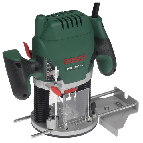 Фрезер вертикальный Bosch POF 1200 AE – прибор для обработки деревянных, пластиковых и металлических заготовок. В режиме пониженного числа оборотов и с соответствующими фрезами можно обрабатывать даже цветные металлы. Фрезер вертикальный Bosch POF 1200 AE оснащен целым комплексом высокоточных систем безопасности – блокировка шпинделя, защита от перегрузки, стабилизация оборотов и прозрачный кожух, который не позволяет стружке попасть на пользователя. Помимо этого, на корпусе Bosch POF 1200 AE есть специальные резиновые вставки, предназначающиеся для защиты.
