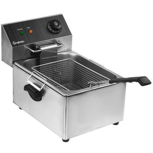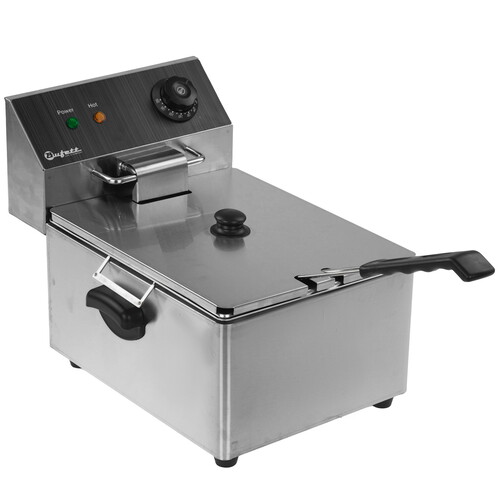 Электрическая фритюрница Bufett CFR 144 - это компактное и эффективное оборудования для профессиональной кухни, идеально подходящее для приготовления различных видов блюд во фритюре. Прибор оснащен интуитивно понятным регулятором температуры и индикаторами нагрева масла. В комплект входит крышка для корзины (чаши), предназначенная для сохранения чистоты и тепла, а также сливной кран для слива масла.