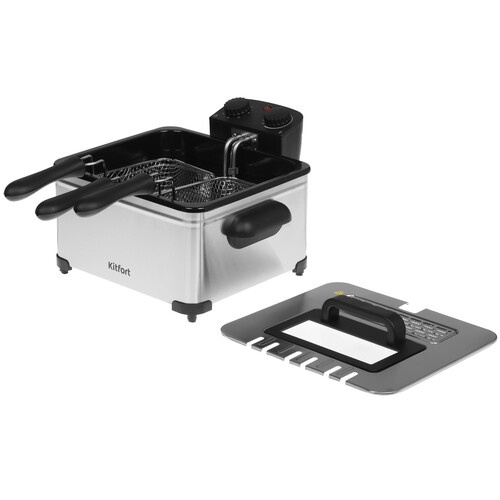 Фритюрница Kitfort КТ-6901 в сером корпусе – электрическая модель с открытой нагревательной спиралью. Она предназначена для домашнего использования. Мощный нагревательный элемент разогревает масло за 6-8 минут. Объем масла составляет 4.5 литра, что позволяет готовить большие порции – до 3 кг картофеля фри. Нагревательный элемент расположен в нижней части чаши. Это обеспечивает максимальную теплопередачу. Корпус фритюрницы Kitfort КТ-6901 выполнен из пластика с матовым покрытием. Он устойчив к нагреву, не выгорает и легко моется. Нескользящие ножки обеспечивают устойчивость модели на поверхности. Съемные чаша и крышка позволяют полностью разобрать фритюрницу для очистки. В крышке Kitfort КТ-6901 есть встроенная система улавливания запахов и капель масла. Модель оснащена механическим таймером на 30 минут. Термостат от 150°C до 190°C позволяет настраивать температуру под разные продукты. Через смотровое окно можно отслеживать процесс жарки без открытия крышки. Холодная зона в нижней части чаши предотвращает пригорание пищи и продлевает цикл использования масла.