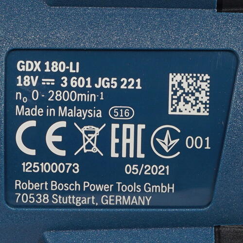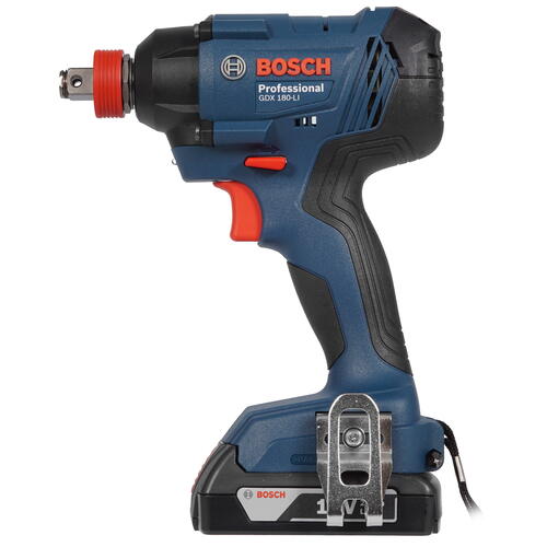 Гайковерт Bosch GDX 180-LI – аккумуляторный инструмент с ударным механизмом, позволяющий выполнять откручивание и закручивание крепежных элементов. Он предусматривает работу с патронами двух стандартов – квадрат 1/2 дюйма и внутренний шестигранник 1/4 дюйма. Частота ударов на уровне 3600 об/мин обеспечивает высокий уровень производительности. Для освещения рабочей зоны реализована подсветка на основе светодиода. Функция реверса позволяет изменять направление вращения. Bosch GDX 180-LI поставляется в комплекте с двумя сменными аккумуляторами и устройством для восстановления заряда. Эргономичная рукоятка с прорезиненным покрытием способствует комфортному удержанию инструмента. Также в наборе предусмотрен кейс для хранения всех принадлежностей.